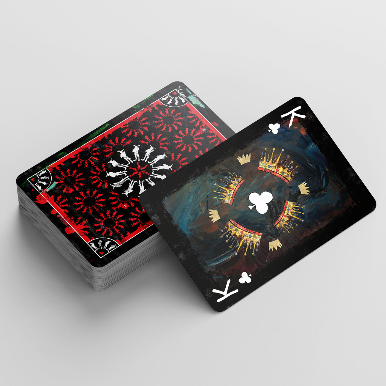 この美しい54枚組トランプの裏面にはジョニーの「The Bunnyman」モチーフ、表面には複数の異なるアートワークが配されています。