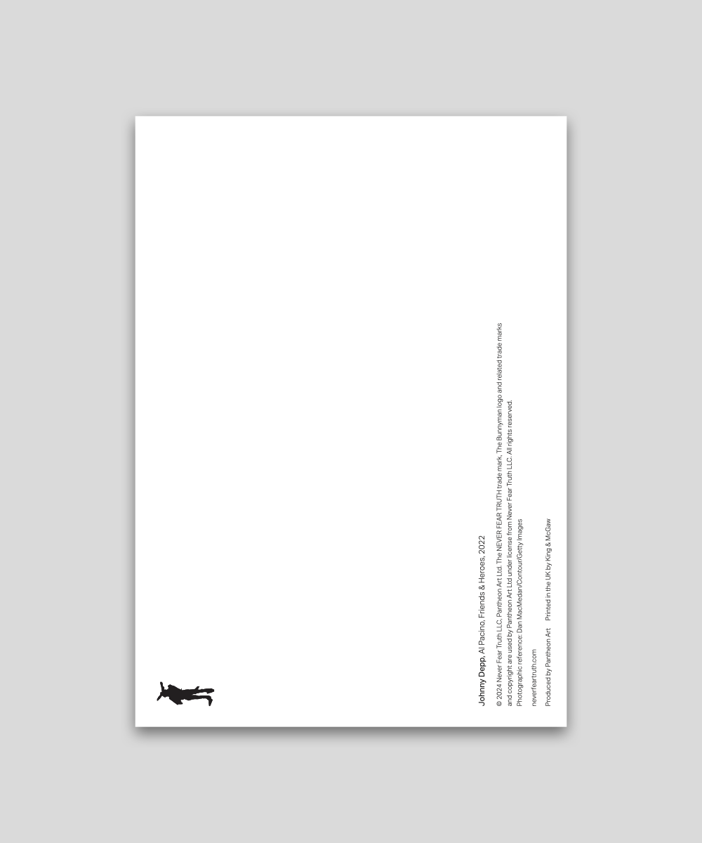 この“Everyman”作品はコーヒーの染みを構図に取り入れ、ジョニー・デップの創造性と偶然を美に変える見事な才能を示しています。制作年不明のジョニー・デップ原画を基にしています。