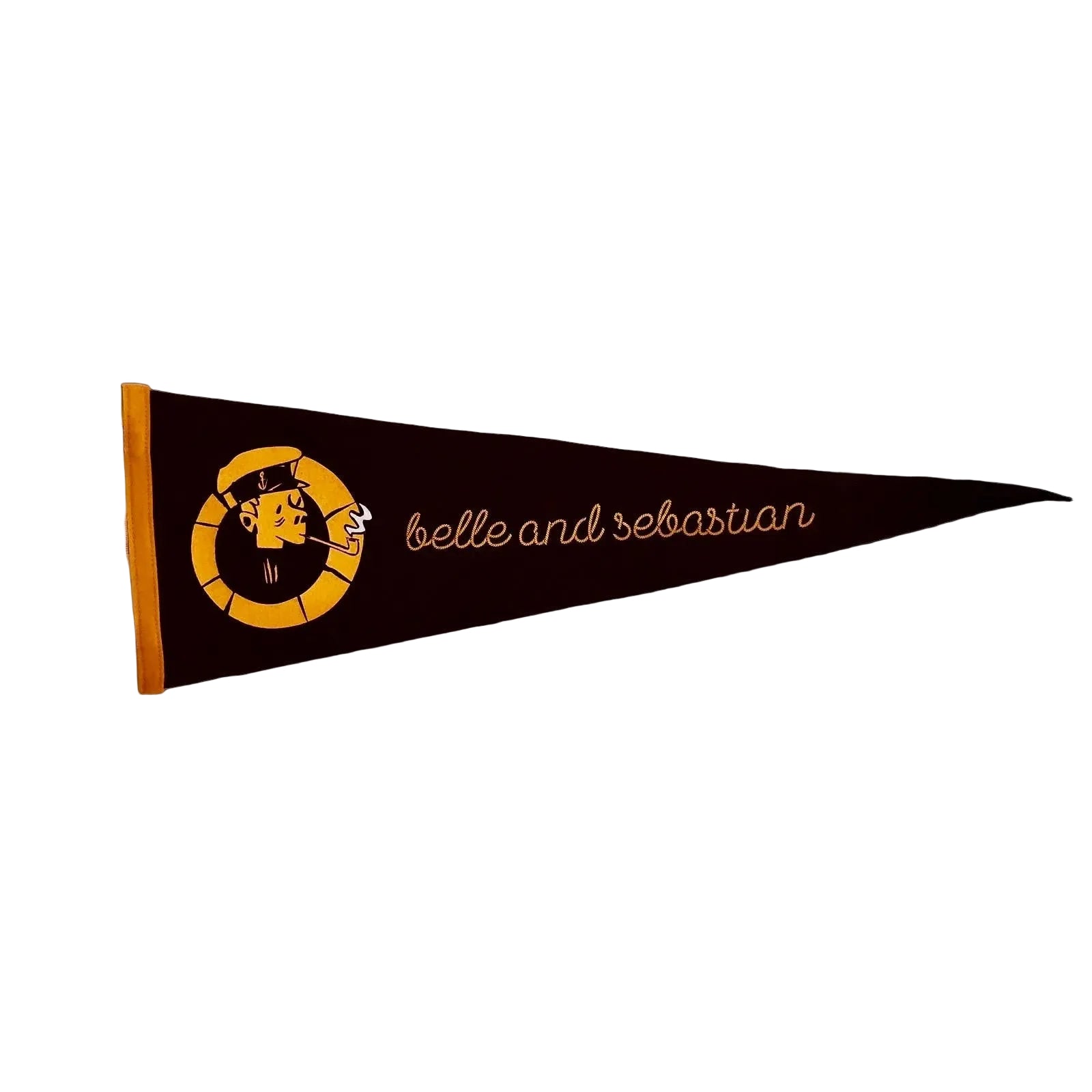 ネイビーとイエローがかわいいこのペナントは、ニューヨーク州バッファローのオックスフォード・ペナント社で製造されており、高品質のウールフェルトにスクリーンプリントのデザインが施されています。