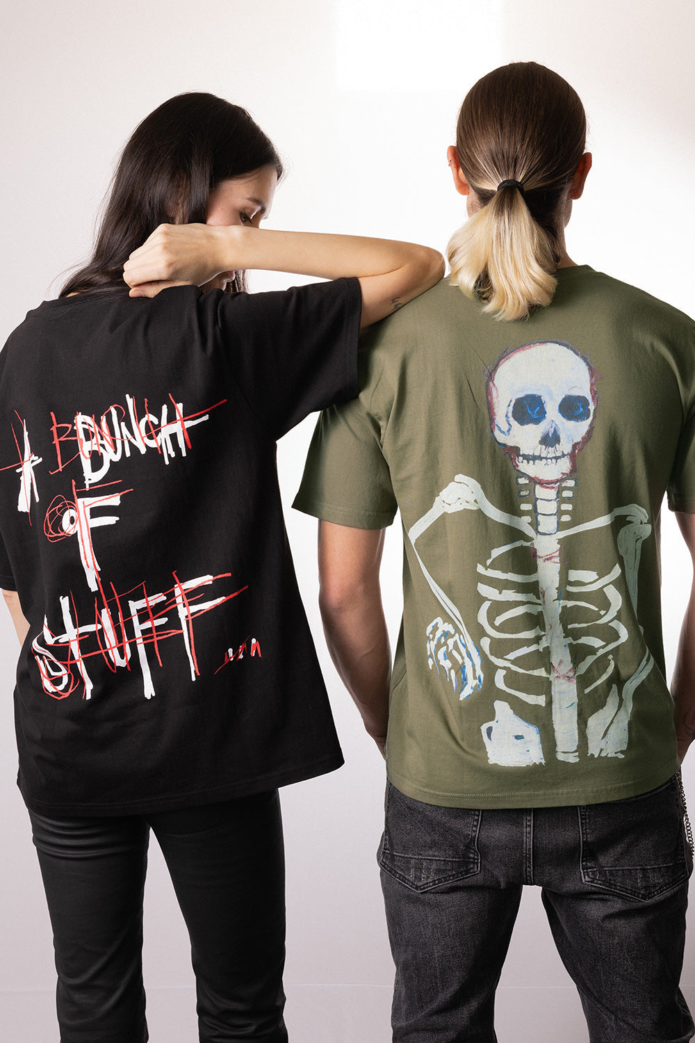 この緑の骸骨のデザインTシャツは、印象的なスケルトンが背面にプリントされています。ジョニー・デップの死と闇への強い関心がこのデザインに表れており、彼の家や写真に度々登場する頭蓋骨や骸骨を反映しています。