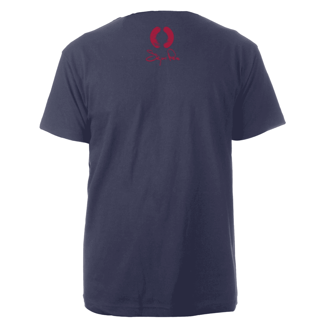 コットン100%、ネイビーのTシャツ。